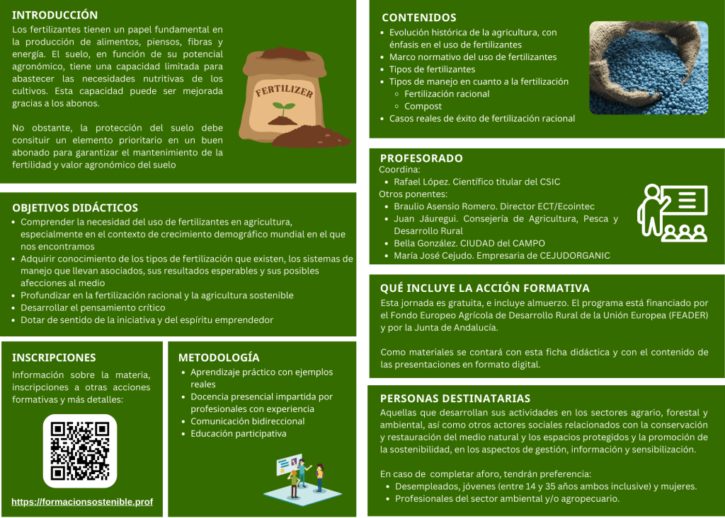 USO SOSTENIBLE DE FERTILIZANTES. NUEVAS PERSPECTIVAS Y NORMAS. Parque Periurbano La Sierrezuela, Posadas (Córdoba) (Descargar ficha de actividad) Comparte esto: Haz clic para compartir en X (Se abre en una ventana nueva) X Haz clic para compartir en Facebook (Se abre en una ventana nueva) Facebook Me gusta Cargando... Relacionado